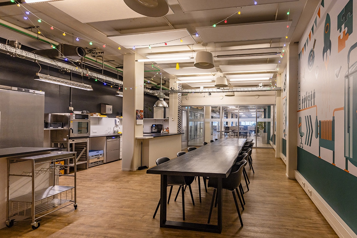 Kantoorruimte van circa 460 m² gelegen op de 2e etage in gebouw ''Kraton'', voorzien van kamerindeling en luxe keuken.Stoer en veelzijdig: De Schiecentrale.