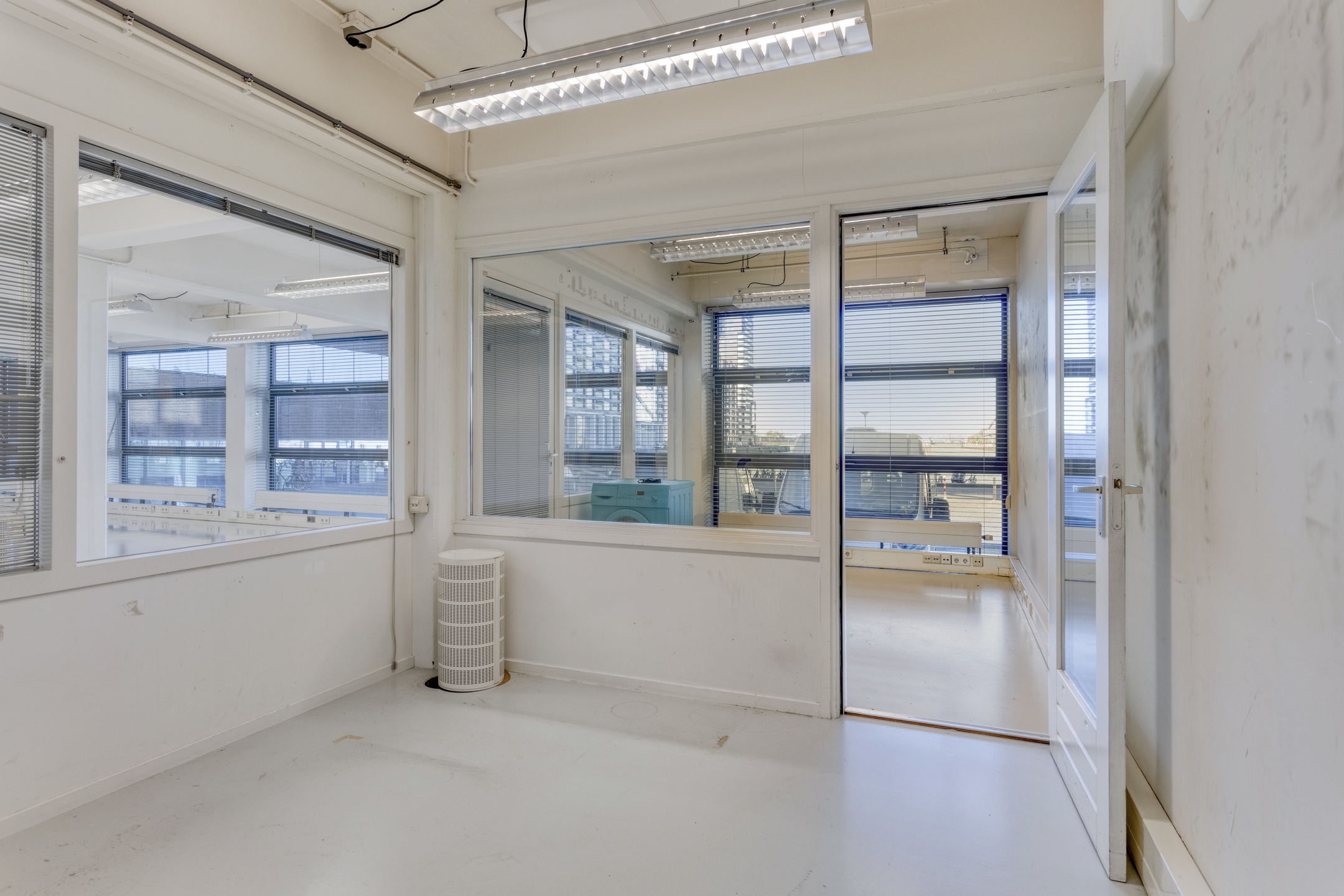 Lloydstraat 21B: circa 204 m² kantoorruimte gelegen op de begane grond met uitzicht op de Maas.Het overige deel van de begane grond is verhuurd aan radiostation FunX.